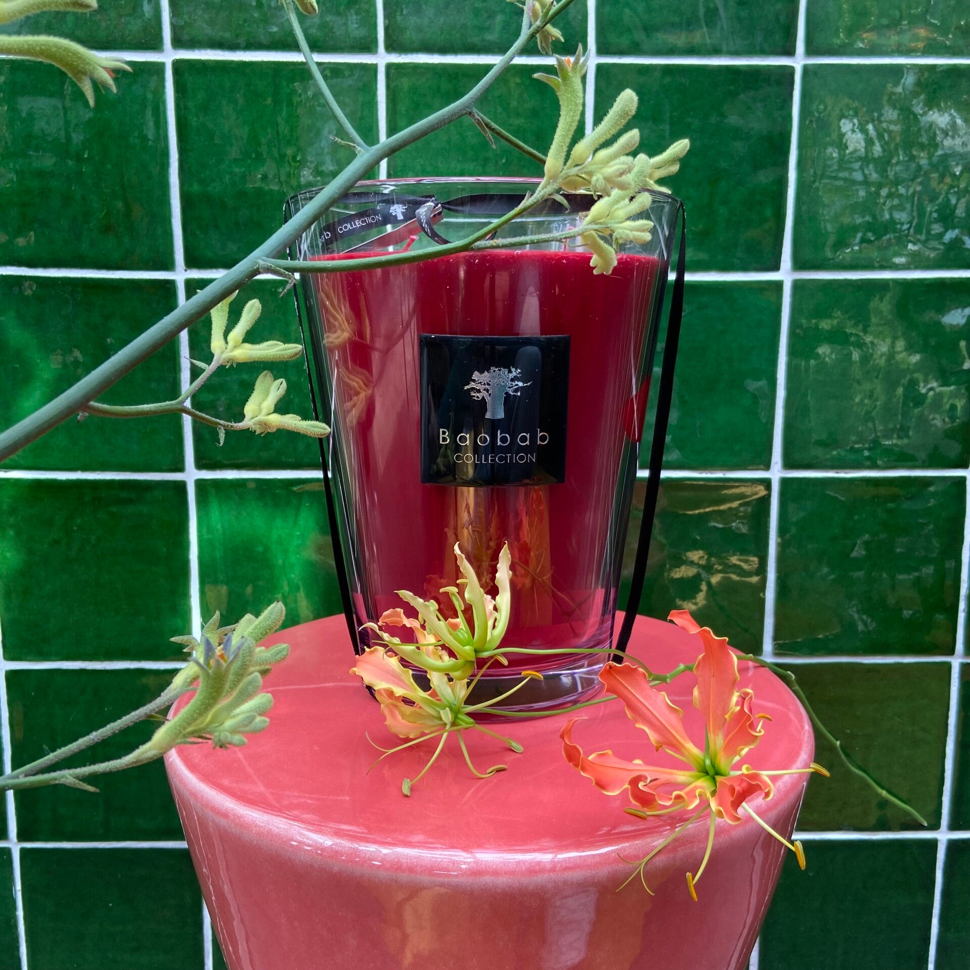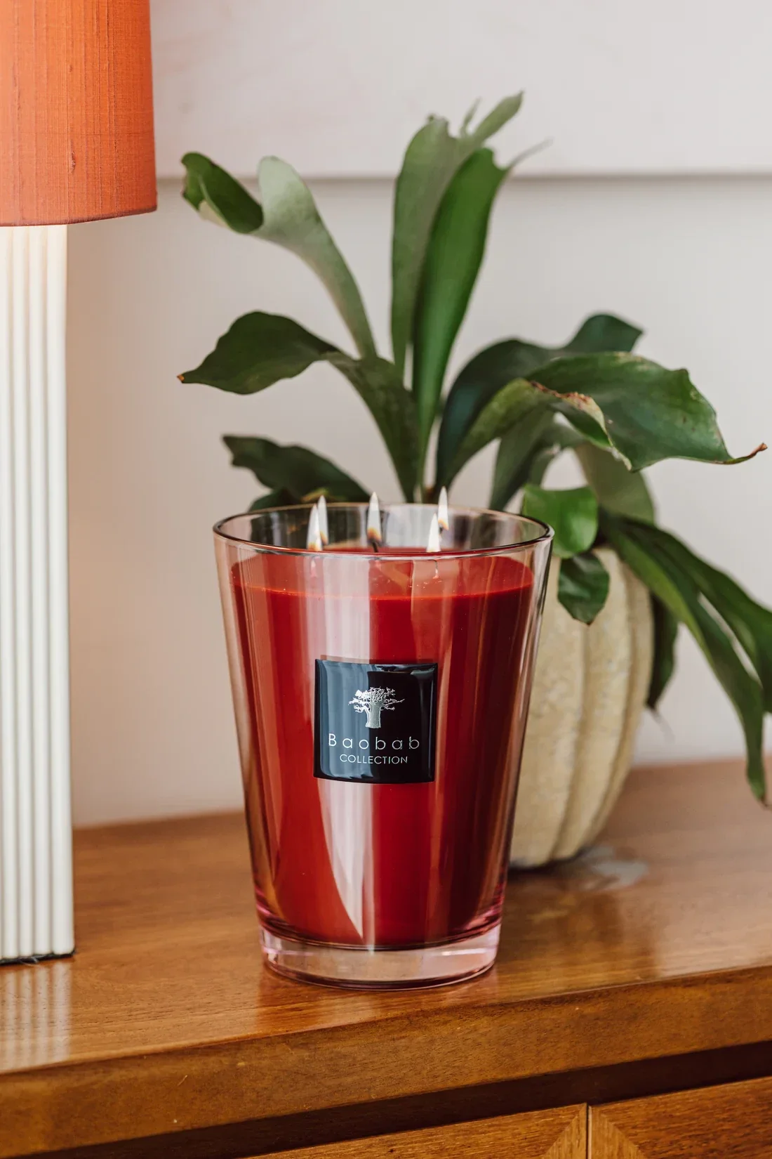 De Maasai Spirit-geurkaars is geïnspireerd door de typische gewaden van de legendarische Masaikrijgers. Het intens rood van de kaars en het iriserend glas maakt een krachtig statement in elk interieur.
