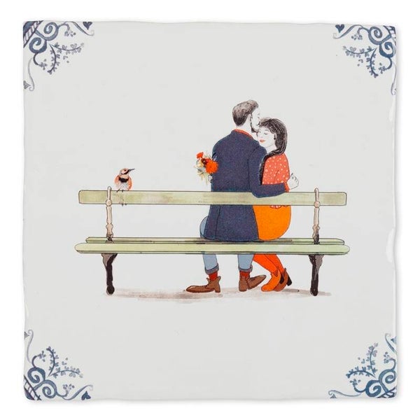 Dit romantische ontwerp van Esther Sepers is het perfecte tegeltje voor degene die de kleine dingen in het leven kan waarderen. Zoals een ideale zondagochtend: het park in met je geliefde voor een wandeling. Eventjes uitrusten op een bankje, en voor je het weet deel je samen een klein en simpel momentje van geluk! Op de zondagochtend is een ode aan de simpele dingen in het leven die je achteraf veel geluk brengen.