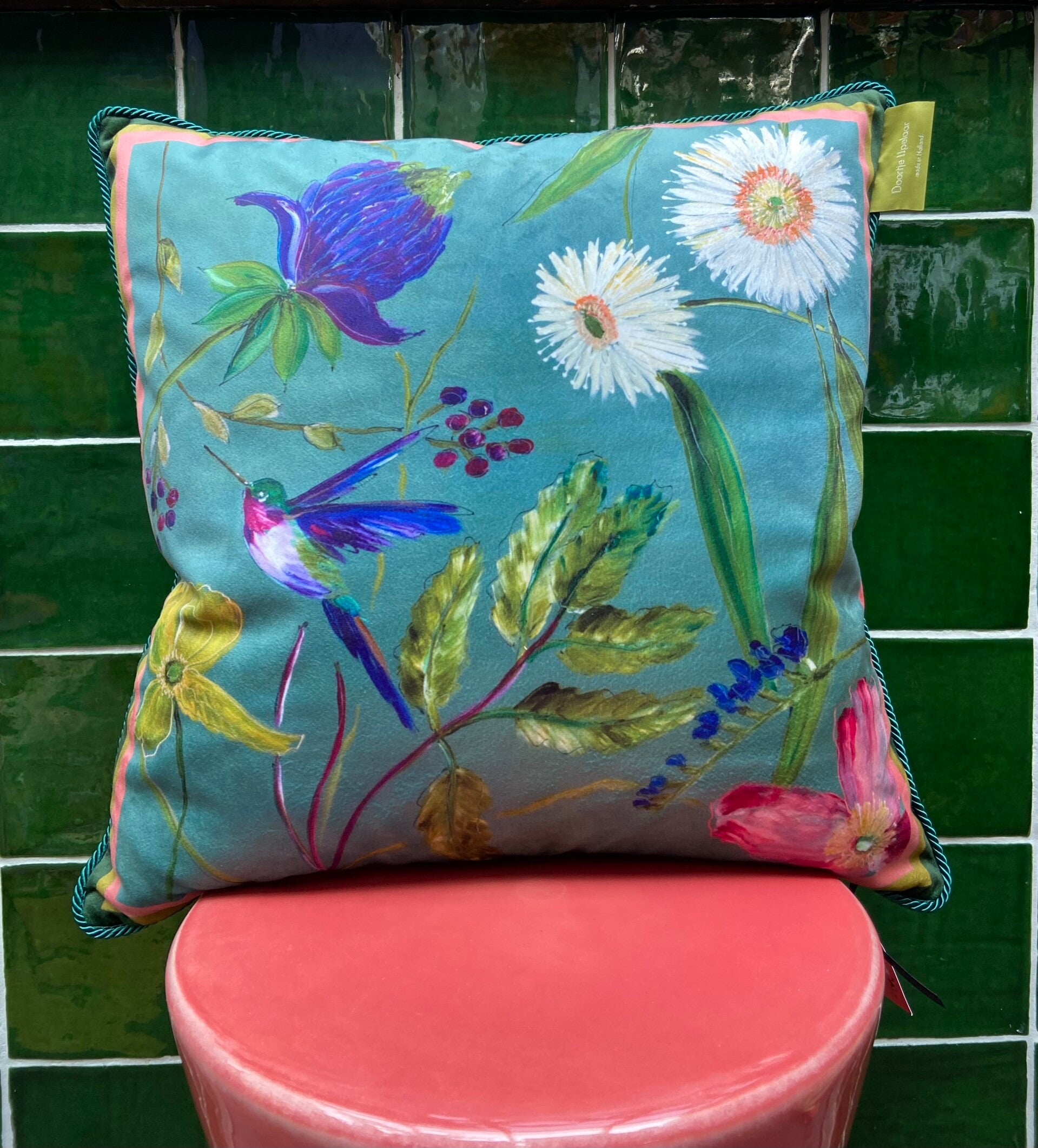 Dit prachtige kussen “Emerald” van Doortje IJpelaar heeft een zijdezachte comfortabele ‘touch’, afgewerkt met een piping. De vulling is van dons. De vulling is van dons.