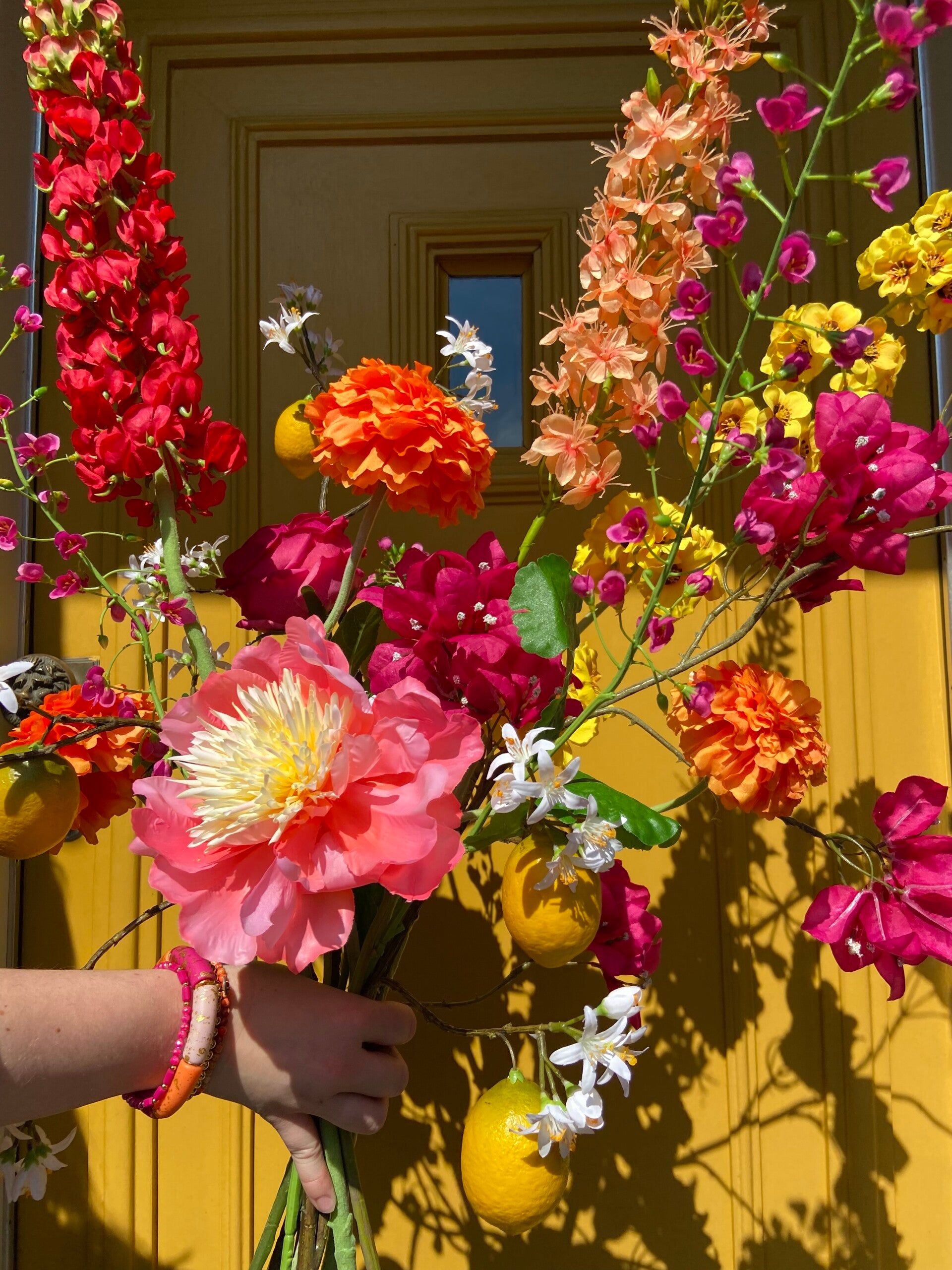 Een vrolijk zomers zijden boeket met de volgende bloemen!