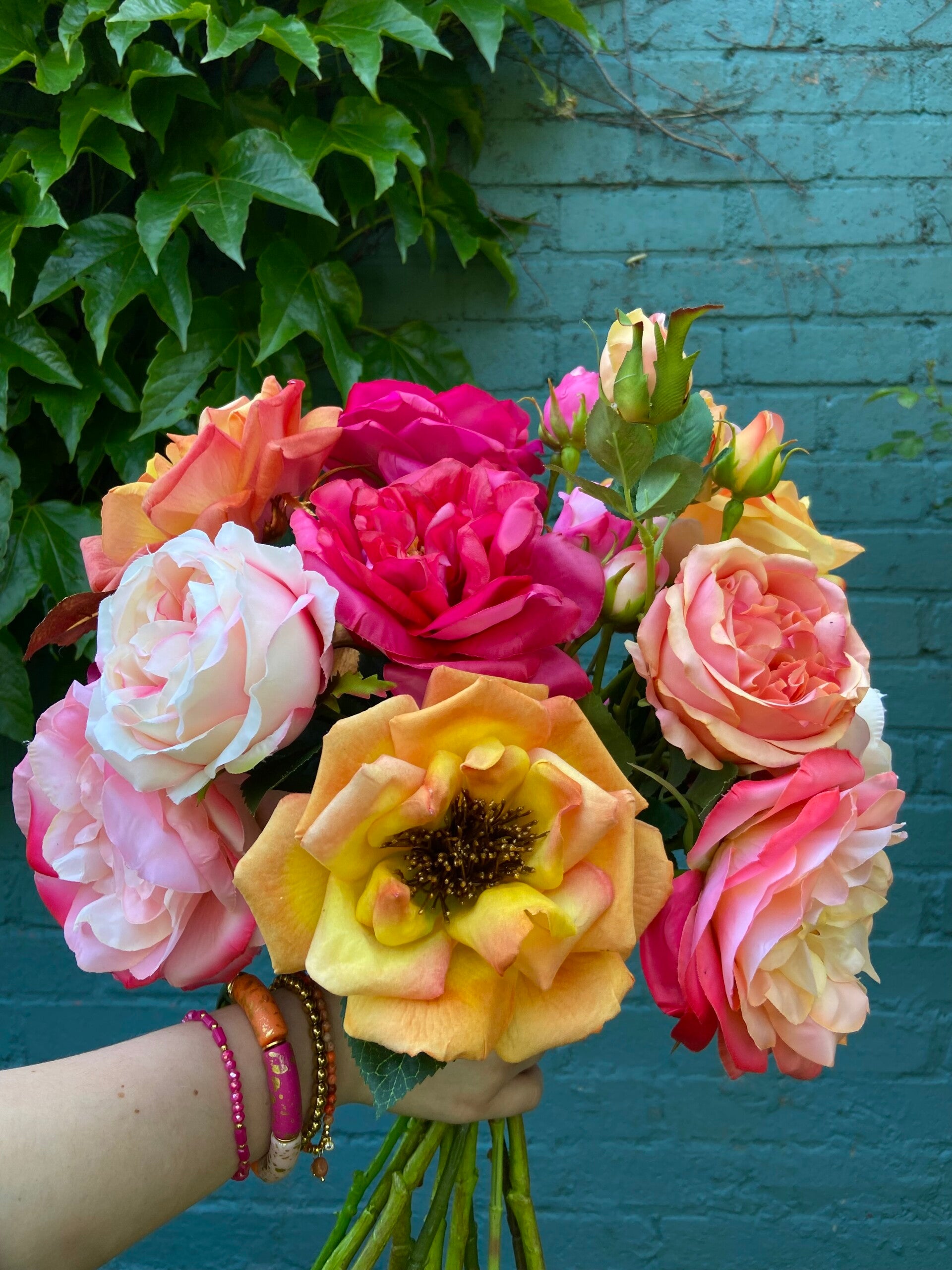 Zijden boeket 'Beautiful roses'