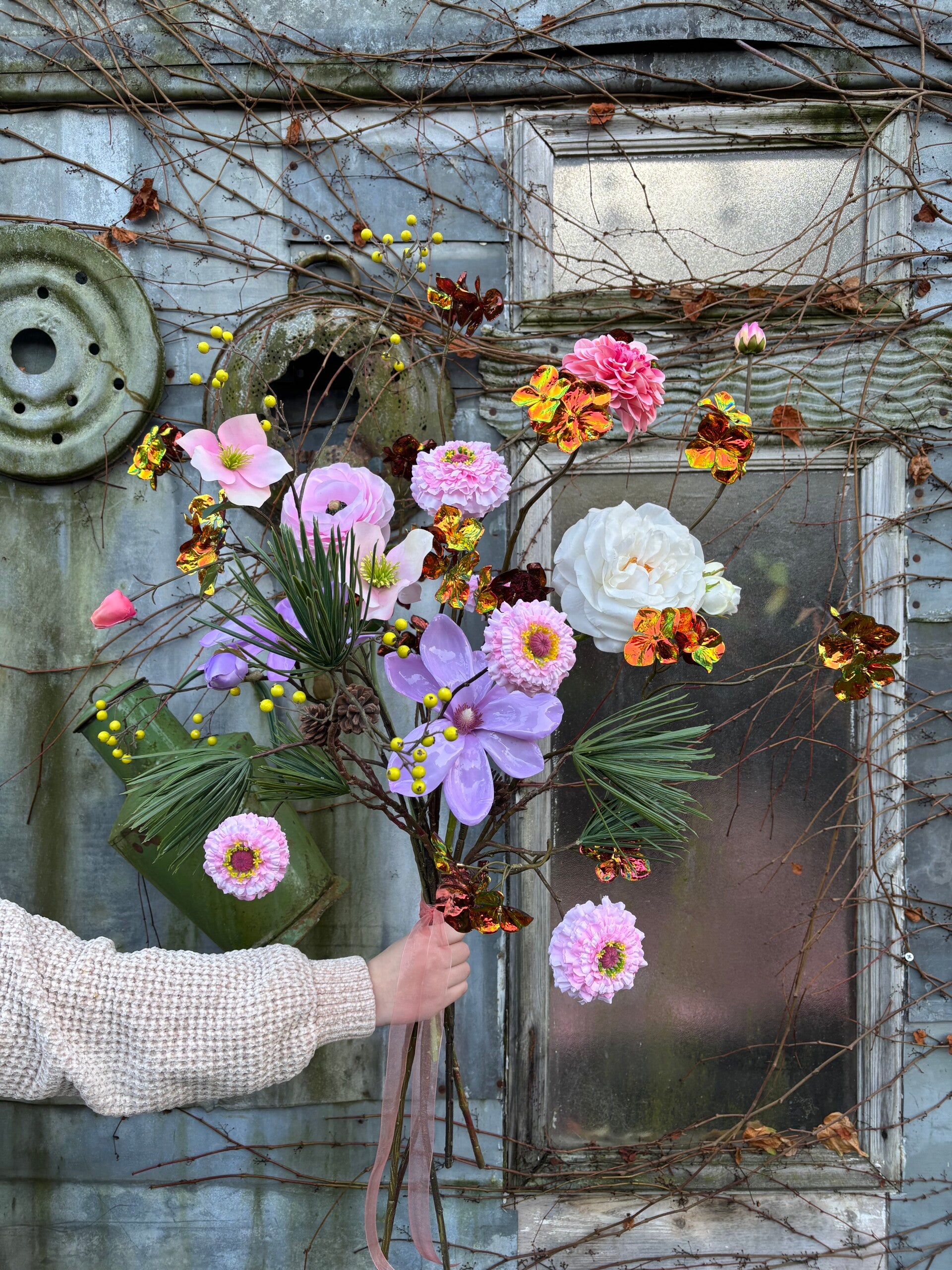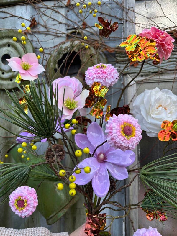 Een frozen winter zijden boeket met de volgende bloemen!