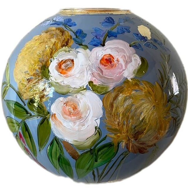 Ontdek de vaas uit de Fall 2024 collectie, met een diameter van 38 cm (15 inch). Deze prachtige vaas is met veel toewijding handbeschilderd door Doortje IJpelaar © en verfijnd met een vleugje goud. Elke vaas is mondgeblazen en wordt geleverd met een speciaal ontworpen binnenvaas, perfect om verse bloemen in te schikken.