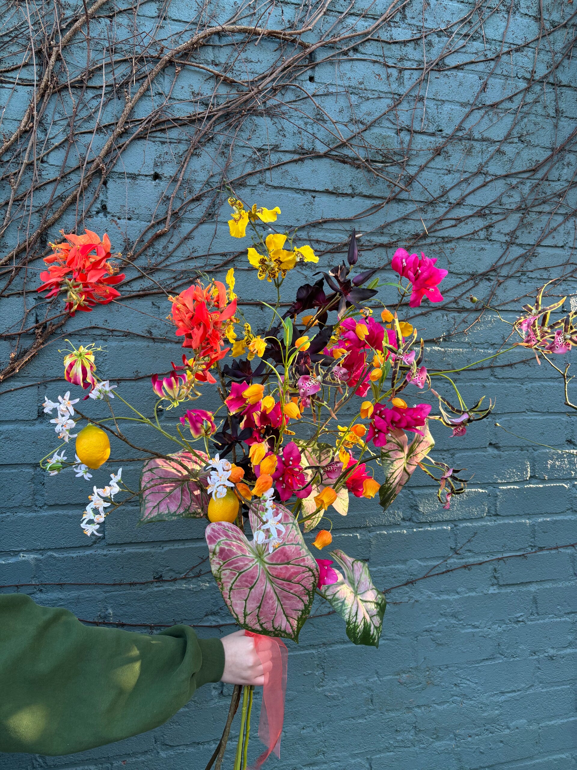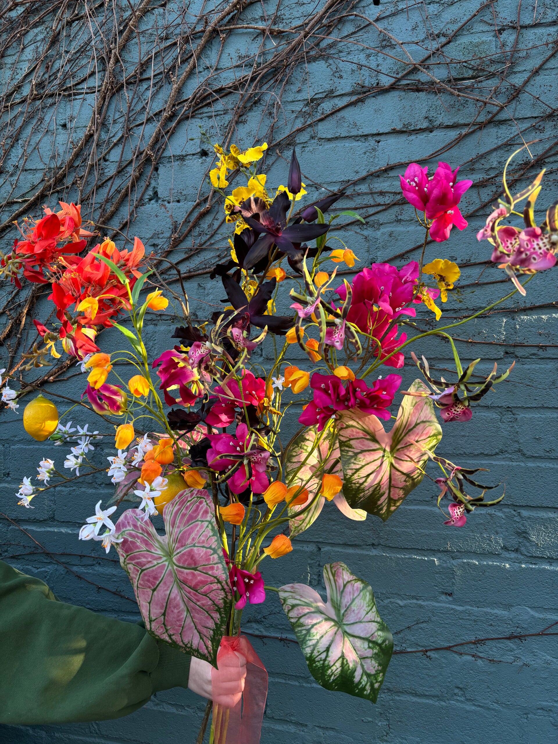 Een divers 'Tropical vibes' zijden boeket met de volgende bloemen: