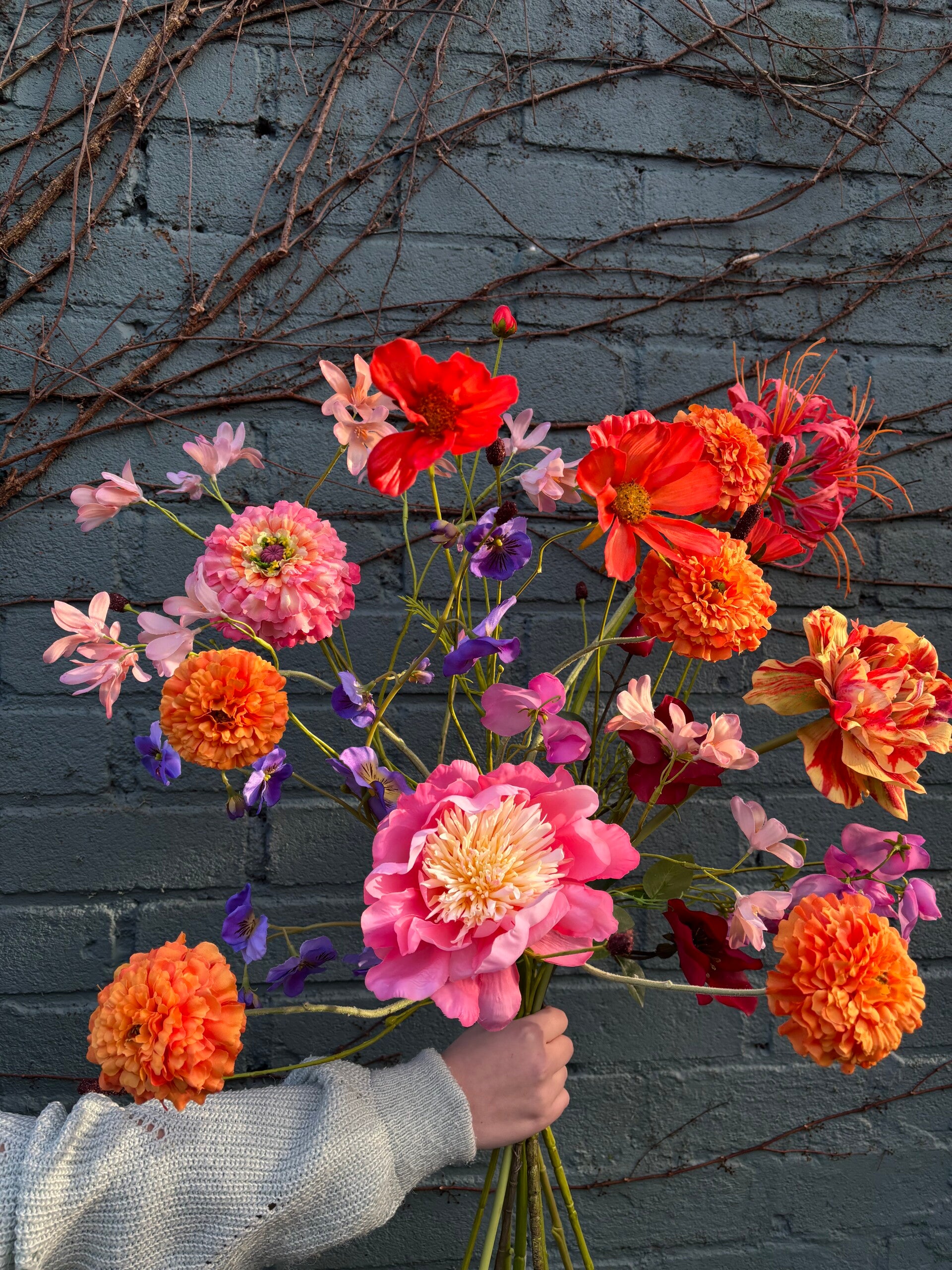 Een divers 'Season Surprise' zijden boeket met de volgende bloemen: