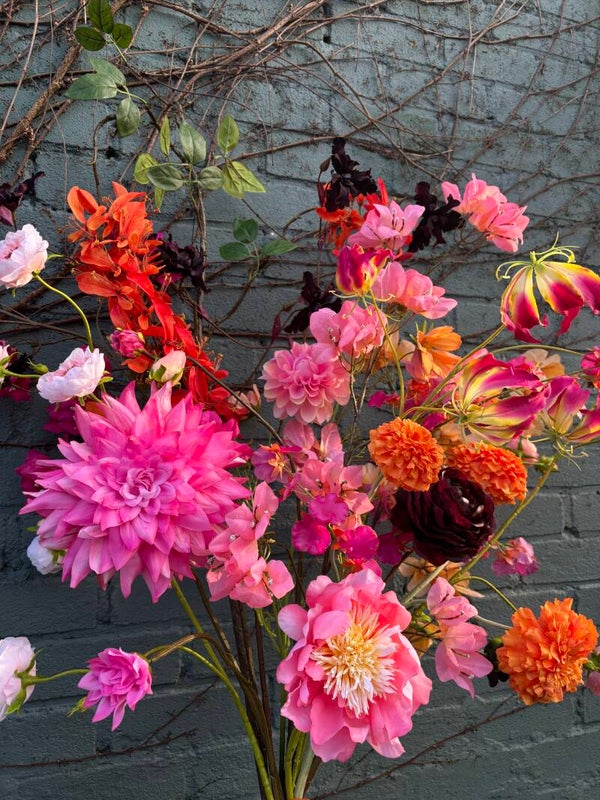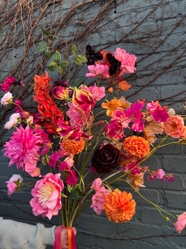 Een divers 'Lovely Bomb' zijden boeket met de volgende bloemen: