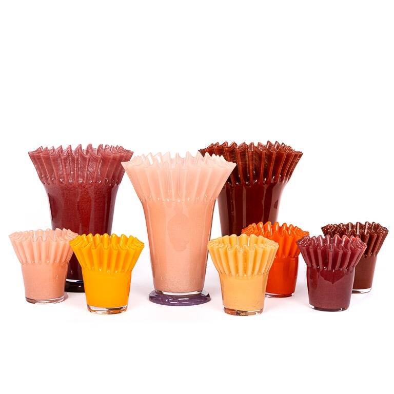 - Afgewerkt met luster, dat het oppervlak verschillende kleuren geeft.